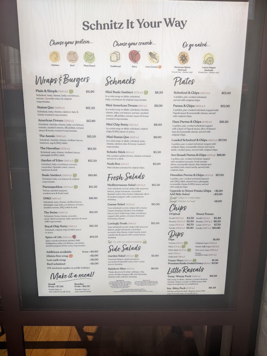 “ I just popped in for a quick dinner and just had a Chicken Parma and some chips nothing special. Very nice and delicious. I would definitely go back to Schnitz again. Overall very happy and would definitely recommend it and especially the chips. ”